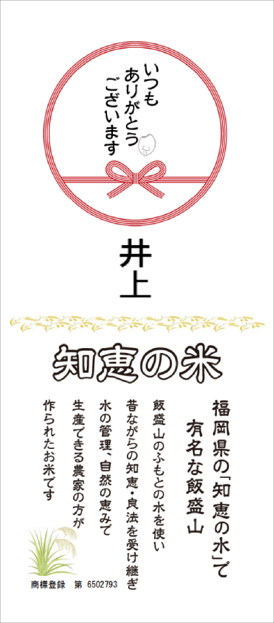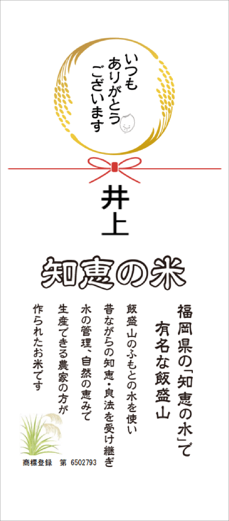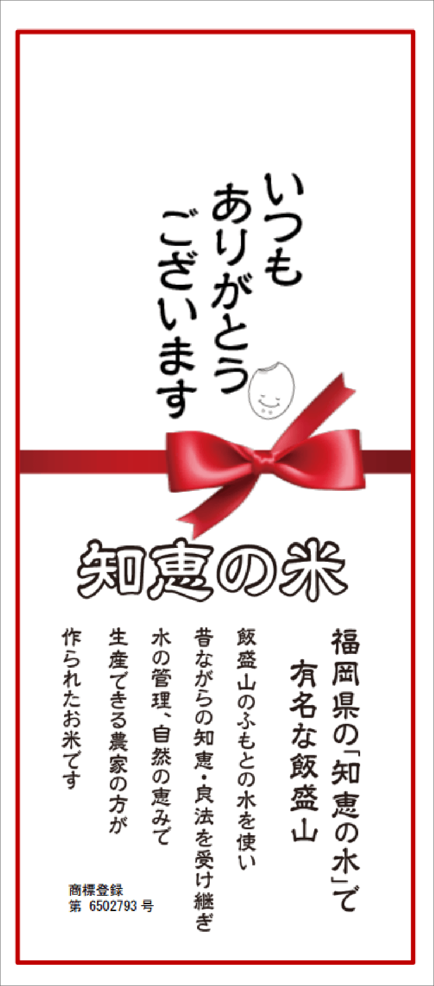 『知恵の米』は最新の年度産のみ使用のお米です